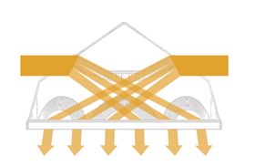 正能量科技无电照明系统的钻石型采光器:由4片钻石面和8片折射聚光透镜组成的钻石型采光器,可高效采集东南西北四面八方的光线,采光效率比普通的采光器提高15%以上;且表面平滑,灰尘不易存留,具有自洁功能,且能过滤90%以上的有害紫外线,有利于人的健康;对室内物品不会产生影响。