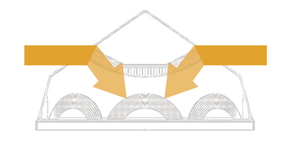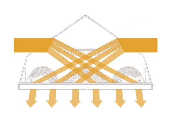 不仅使上午及下午阳光转向导入,还对光线进行聚焦,提高采光效率。