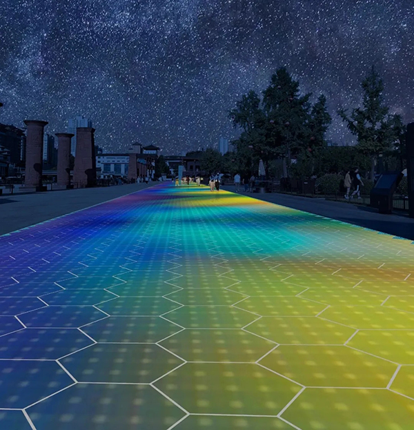 ▲光能宝盒发电地砖夜间景观亮化效果